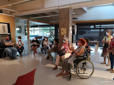 L'acte va comptar amb l'assistència d'unes 30 persones i va estar presentat pel company Arnaldo Gil, juntament amb la Lola Martos i la Cristina, amigues de les homenatjades. La mostra ha estat possible gràcies a una donació que la mateixa Lola va fer a l'entitat dels dibuixos i poemes de totes dues germanes bessones. Per als qui desconegueu qui van ser la Sole i l'Adela, ambdues van néixer a Barcelona el 1956. Els seus avantpassats ja havien viscut a Nou Barris. Una part destacada de la seva formació literària va ser al taller de literatura i escriptura "L'Entorn de la Paraula" que s'impartia a l'Ateneu Popular de 9 Barris. Posteriorment van estar al Casal de Barri de la Prosperitat i, després, al Casal Popular 3 Voltes Rebel on van crear un taller de literatura i escriptura anomenat "El Vici Solitari" als qual animaven als participants a transmetre sobre el paper tot allò que sentien.